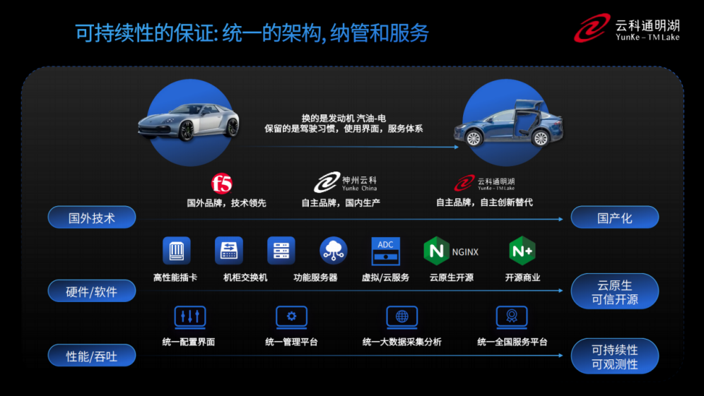 吳靜濤強調(diào),“在數(shù)字化轉(zhuǎn)型的過程中,企業(yè)從傳統(tǒng)IT架構(gòu)向云原生架構(gòu)過渡,在企業(yè)內(nèi)部形成了云原生、信創(chuàng)和傳統(tǒng)IT架構(gòu)等多元并舉的態(tài)勢。企業(yè)實現(xiàn)應(yīng)用可持續(xù)性發(fā)展,需要站在架構(gòu)的戰(zhàn)略高度,通過統(tǒng)一的配置界面、統(tǒng)一的管理平臺、統(tǒng)一的大數(shù)據(jù)采集分析,以及統(tǒng)一的服務(wù)平臺等關(guān)鍵要素,來保證企業(yè)技術(shù)迭代創(chuàng)新過程中的應(yīng)用可持續(xù)性和技術(shù)選型靈活性,尤其是實現(xiàn)核心信創(chuàng)的可靠過渡?!?/p>