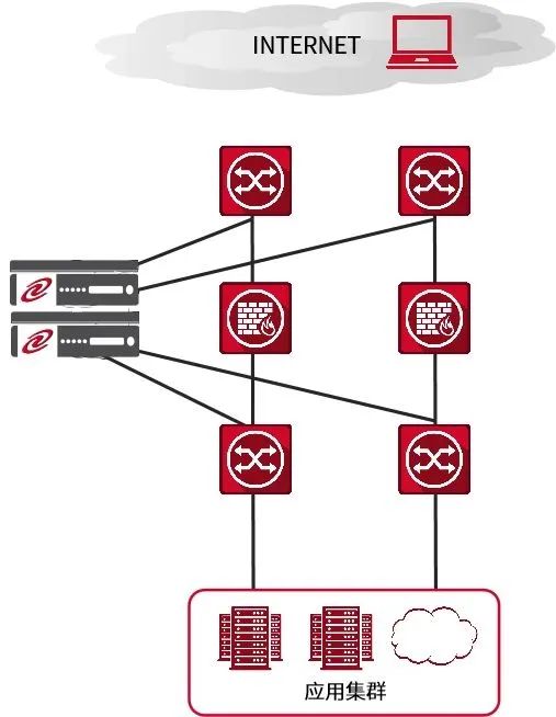 由于用戶數(shù)據(jù)中心已經(jīng)部署完畢,所以負載均衡設備旁路模式部署,拓撲圖如下: