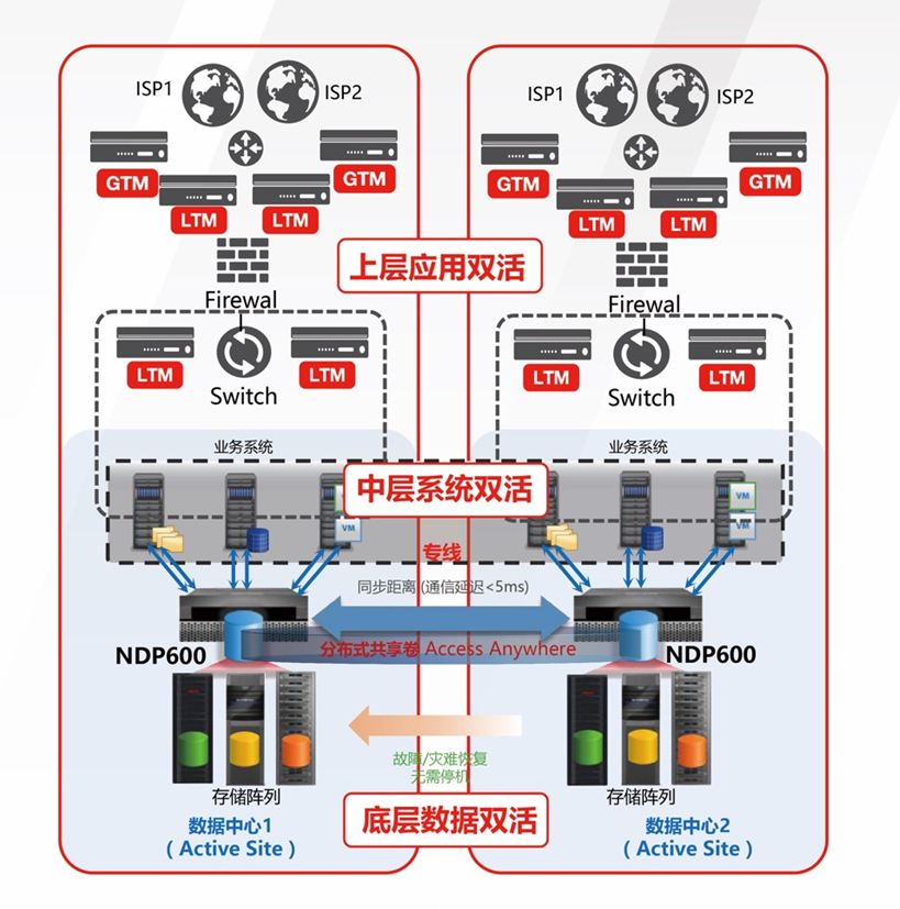 通過NDP600集中存儲的雙活架構(gòu),實(shí)現(xiàn)底層數(shù)據(jù)的兩端一致性